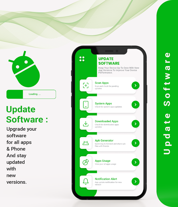 আপডেট সফ্টওয়্যারটি শুধুমাত্র আপনার অ্যাপ আপডেট করার উদ্দেশ্য পূরণ করার জন্য তৈরি করা অ্যাপ। এই ফোন আপডেট সফ্টওয়্যার অ্যাপ ব্যবহার করে উপলব্ধ সর্বশেষ সংস্করণে আপনার ডিভাইসে ইনস্টল করা সমস্ত অ্যাপ এবং সিস্টেম অ্যাপ আপডেট করুন। আপনি এই আপডেট সফ্টওয়্যার সর্বশেষ অ্যাপ ব্যবহার করে খুব সহজেই সিস্টেম সফ্টওয়্যার আপডেট ইনস্টল করতে পারেন।