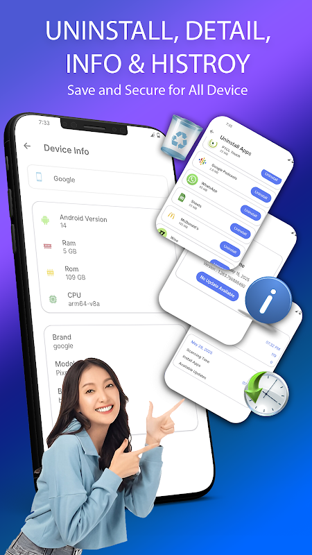সফ্টওয়্যার আপডেট - ফোন এবং সমস্ত অ্যাপ আপনাকে সর্বশেষ অ্যান্ড্রয়েড সিস্টেম আপডেট এবং ইনস্টল করা সমস্ত অ্যাপের আপডেটগুলি এক জায়গায় পরীক্ষা করতে সহায়তা করে। একটি সহজ এবং ব্যবহারকারী-বান্ধব ইন্টারফেস সহ