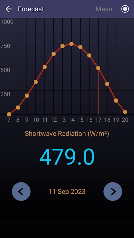 এখানে একটি চমৎকার অ্যাপ্লিকেশন যা সৌর বিকিরণ সম্পর্কিত সবচেয়ে গুরুত্বপূর্ণ সূচকগুলির তাত্ক্ষণিক এবং গড় মানগুলি প্রদর্শন করে৷ এই নির্ভুল পরিমাপের টুল (পোর্ট্রেট ওরিয়েন্টেশন, Android 6 বা নতুন) ইন্টারনেটের সাথে সংযুক্ত ট্যাবলেট, ফোন এবং স্মার্টফোনে কাজ করে। প্রথমে, এটি আপনার ডিভাইসের GPS থেকে স্থানীয় স্থানাঙ্ক (অক্ষাংশ এবং দ্রাঘিমাংশ) পায় এবং তারপর একটি ইন্টারনেট সার্ভার থেকে সেই প্যারামিটারগুলি পুনরুদ্ধার করে৷ পাঁচটি গুরুত্বপূর্ণ পরামিতি রয়েছে যা প্রতি বর্গ মিটারে প্রাপ্ত সৌর বিকিরণের পরিমাণ দেখায়: