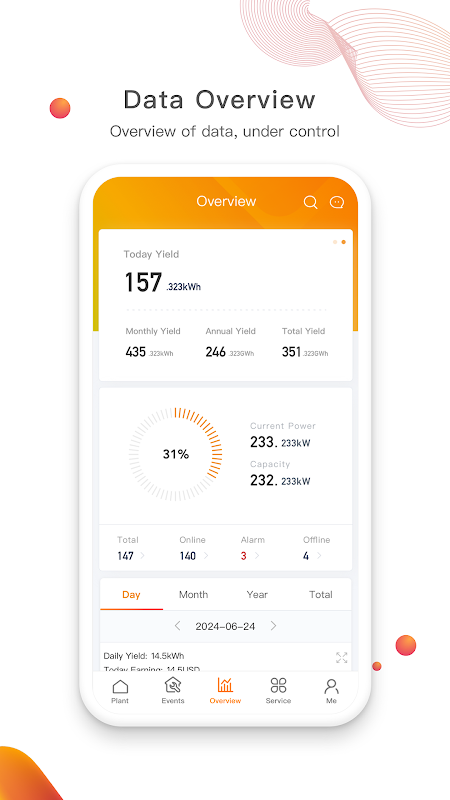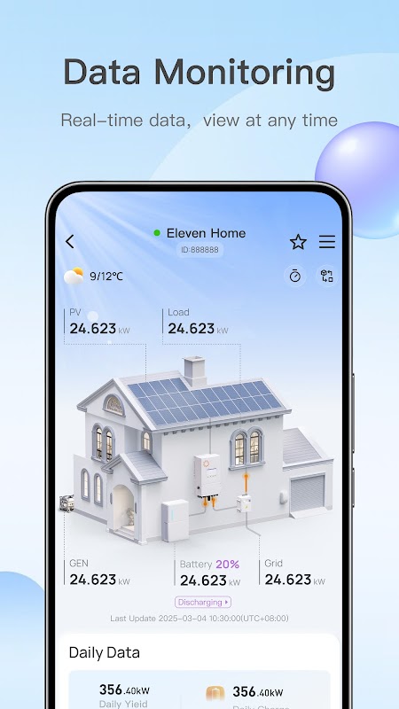 1. পিভি প্ল্যান্টের রিয়েল-টাইম ডেটা দেখুন এবং সরঞ্জামের অবস্থা যে কোনও সময় এবং যে কোনও জায়গায় নিয়ন্ত্রিত হয়।