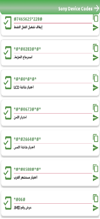 Now you can discover the secret world of Android mobile devices. Some codes may not work on certain devices because their manufacturer does not allow them., But you can still try them on other devices, when these codes are manually typed from the phone dialer or you can copy this code with long press on the code and paste it in the clipboard . There is also a function of Sony Secret codes to share with Social Apps for free and offline.