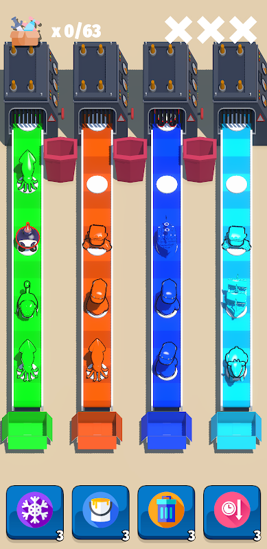 কনভেয়র বেল্টে বিভিন্ন ধরনের খেলনা দেখা যাচ্ছে! আপনার কাজ হল সেগুলিকে রঙ অনুসারে সাজানো যাতে তারা সমস্ত সঠিক বাক্সে ল্যান্ড করে। কিন্তু সাবধান! কনভেয়াররা কখনই থামে না, এবং একটি একক ভুল আপনাকে বিজয়ী হতে পারে!