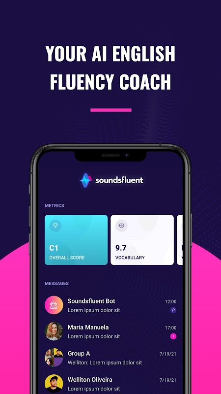 Soundsfluent is an English fluency improvement app that helps you to integrate regular speaking practice and feedback into your daily routine in a fun way, so you can gain fluency and reach your goals.