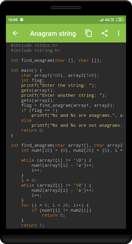 The app contains 250+ basic programs in four different programming languages which include 1) C
