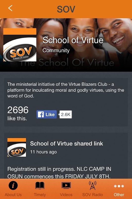 I am very pleased to welcome you to the School Of Virtue (SOV) Mobile App, the ministry arm of the Virtue Blazers Club (A Christian club inculcating godly morals and virtues as a means of curbing immorality, corruption and other social vices in Africa and the world at large). Go through the articles on our blog, Listen to, watch or download the audio/video message for the week, Register for our next upcoming program relevant to you and also feel free to Join us as you deem fit. Allow God to actualize all He wants to do in your life with every resource we have here. We are a family of virtue blazers!!