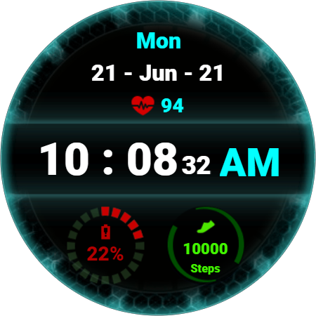 নরম অ্যানিমেটেড প্রান্ত সহ সাধারণ ডিজিটাল Wear OS ঘড়ির মুখ। ঘড়ির মুখের দিকে এক নজরে, আপনি গুরুত্বপূর্ণ তথ্য (তারিখ, সময়, হৃদস্পন্দনের হার, পদক্ষেপের সংখ্যা এবং ব্যাটারি শতাংশ) দেখতে সক্ষম হবেন। অ্যানিমেটেড ব্যাকগ্রাউন্ড একটি দুর্দান্ত প্রভাব তৈরি করে যা আপনাকে অন্যদের থেকে আলাদা করে তুলবে। উপরন্তু, ব্যাটারি তথ্যের রং ব্যাটারি শতাংশ অনুযায়ী পরিবর্তিত হয় যা আপনাকে বিশদ বিবরণে ফোকাস না করেই আপনার ব্যাটারির স্তর কোথায় তা অবিলম্বে জানতে দেয়। একইভাবে, আপনি যখন আপনার দৈনিক লক্ষ্যে পৌঁছান তখন ধাপের সংখ্যা সবুজ হয়ে উঠবে। ঘড়িটি 12H এবং 24H সাপোর্ট করে। দুটি ফর্ম্যাটের মধ্যে স্যুইচ করতে, আপনার ফোনে ফর্ম্যাটটি পরিবর্তন করুন এবং তারপরে এটিকে আপনার ঘড়ির সাথে সিঙ্ক্রোনাইজ করুন৷ সবসময় ডিসপ্লে মোডে, এই ঘড়ির মুখ আপনার জন্য ডিজাইন করা হয়েছে।