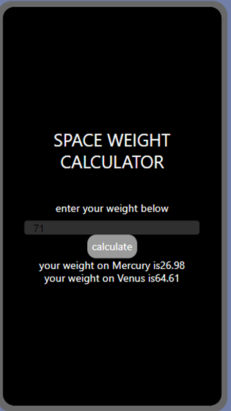 Enter your weight and see how much you weigh on Mercury and Venus.