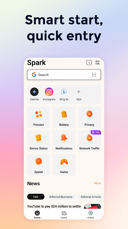 স্পার্ক ব্রাউজার একটি স্মার্ট মোবাইল ব্রাউজার যা সহজে সার্ফিং এবং ডিভাইস পরিচালনার জন্য ডিজাইন করা হয়েছে। এটি শক্তিশালী সরঞ্জামগুলির সাথে মসৃণ ব্রাউজিংকে একত্রিত করে, আপনাকে অবগত, দক্ষ এবং সর্বদা নিয়ন্ত্রণে রাখে।