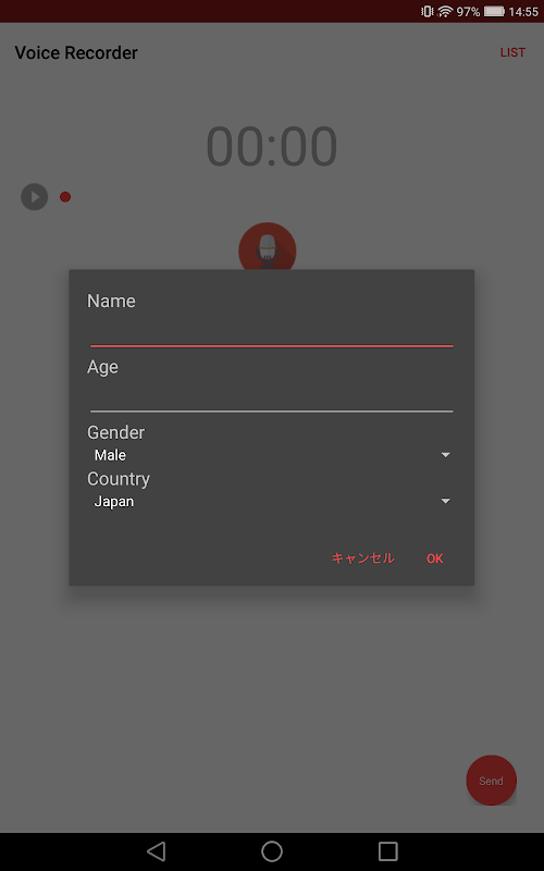 8. First time you send the data, you are asked to input your name, age, gender and country.