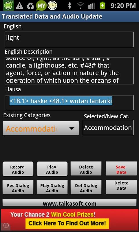 এই পেশাদারী সংস্করণ যদি তারা এটি ব্যবহার করা হয় এমন একটি ভাষায় কথা বলে অনেক উপায় আছে অন্যদের শিক্ষা দেওয়ার জন্য অনূদিত তথ্য আপডেট করার জন্য ব্যবহারকারীদের সক্ষম. এছাড়া নতুন ডাটা অনুবাদ, রেকর্ড তৈরি করতে ব্যবহারকারীদের সক্রিয় এবং ফিরে খেলা বা অডিও হাউসা তথ্য, রেকর্ড মুছে দিন এবং ফিরে খেলা বা ডায়লগ অডিও হাউসা ডেটা মুছে দিন.