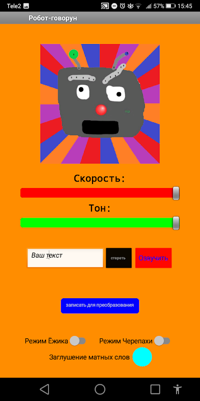 আপনি রোবটের গতি এবং টোন সামঞ্জস্য করতে পারেন। আপনি শুধুমাত্র শব্দ নয়, সংখ্যাও ভয়েস করতে পারেন। যে কোন ভাষায়।