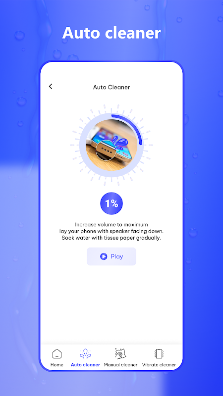 সুবিধা খুঁজছেন ব্যবহারকারীদের জন্য, স্পিকার ক্লিনার অ্যাপটি একটি স্বয়ংক্রিয় পরিস্কার মোড অফার করে। শুধুমাত্র একটি ক্লিকের মাধ্যমে, মোবাইল স্পিকার ক্লিনার অ্যাপটি স্বয়ংক্রিয়ভাবে পরিষ্কারের প্রক্রিয়া চালু করবে।