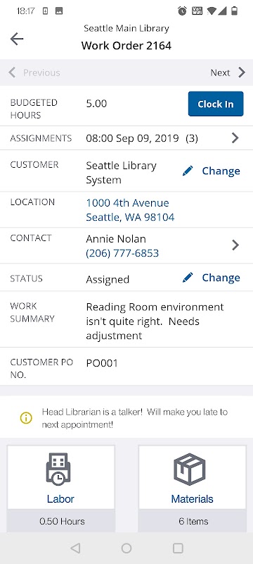 কাজের আদেশে সময়, নোট এবং ছবি দিন এবং পিছনে অফিসে প্রেরণ করুন।