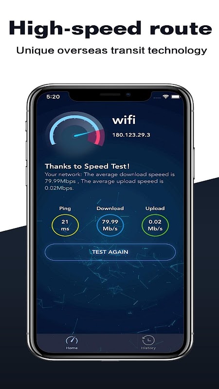 Just take seconds , WiFi Speed Test will show the accurate results, much faster than any other speed test . The fastest Speed Test ! Test Speed Fast !