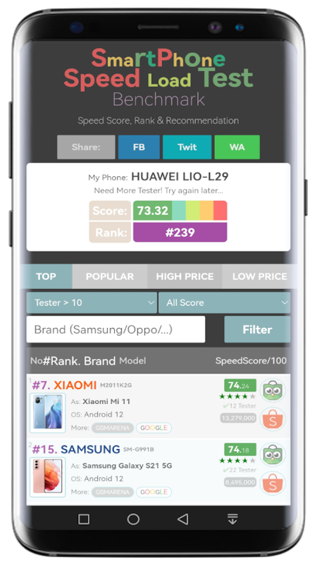 স্পিড লোড টেস্ট স্মার্টফোন বেঞ্চমার্ক ডেটা-চালিত গল্পগুলির উপর ভিত্তি করে ডিজাইন করা হয়েছে যা আপনাকে আপনার স্মার্টফোন এবং ট্যাবলেট সম্পর্কে আরও জানতে সাহায্য করে। এর অনন্য চার্ট, তালিকা এবং র্যাঙ্কিং সহ, এই অ্যাপটি আপনাকে আপনার ডিভাইসের কর্মক্ষমতা সম্পর্কে অতুলনীয় অন্তর্দৃষ্টি দেয়।