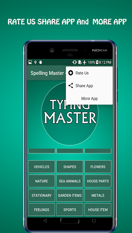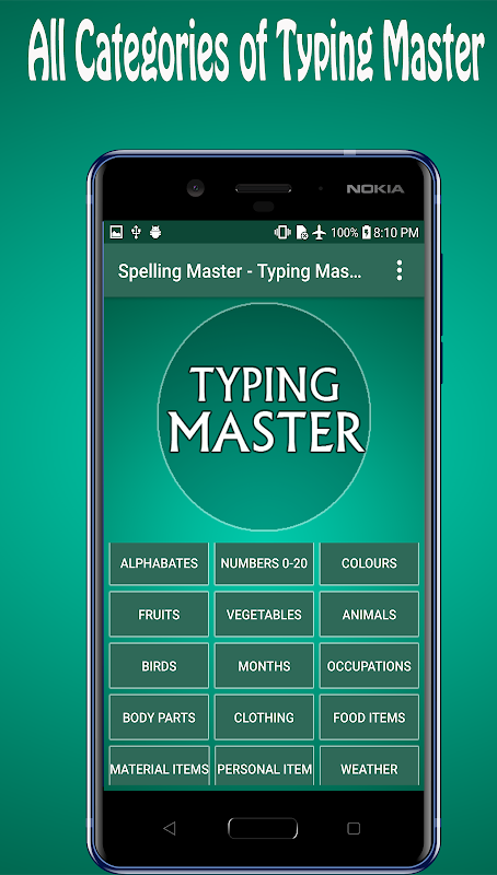 বানান মাস্টার অ্যাপ্লিকেশন আমাদের সারা বিশ্বের জন্য নতুন এবং অনন্য অ্যাপ্লিকেশন। এটি ব্যবহার করা খুব সহজ এবং এই অ্যাপটিতে এমন একটি দুর্দান্ত টাইপিংয়ের মাস্টার অভিজ্ঞতা experience বানান মাস্টার - টাইপিং মাস্টার আপনাকে শব্দ এবং সেখানে বানান সম্পর্কে সম্পূর্ণ জ্ঞান সরবরাহ করে। ব্যবহারকারী এই অ্যাপের মাধ্যমে সহজেই বানান শিখতে পারেন।