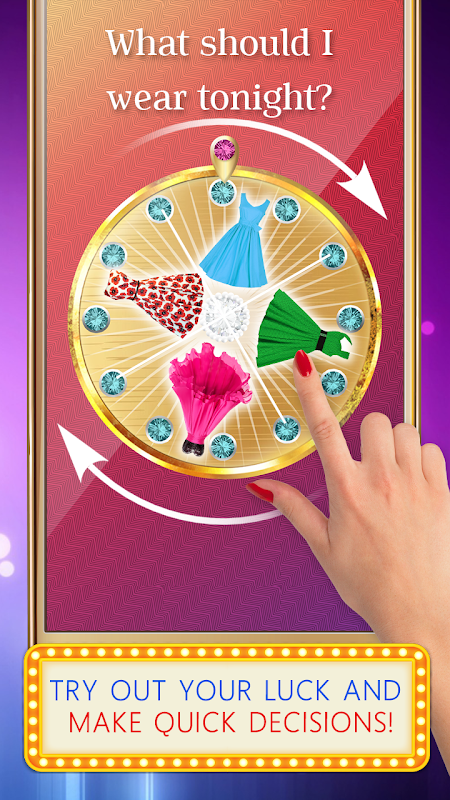 🌞 Say goodbye to indecision! Spin the roulette and easily obtain your answers! "Spin the Lucky Wheel – Decision Making Game" is a new "decision maker" and "random picker" that will assist you in solving your dilemmas and making the right choices. Whether you are tormented by an everyday dilemma about what to eat or you are concerned about taking the right decision at work, at home or on any important occasion, this choice generator will offer you enormous help in the process of making good decisions. Spin your "wheel of fortune" and be sure that it will never fail you! Sometimes making a "random choice" gets harder than it seems, but this "random selector" will make it a piece of cake!