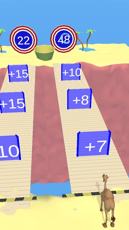 উট তৃষ্ণার্ত এবং পান করতে চায়, কিন্তু তাকে অবরুদ্ধ সেতু পার হতে হবে। আপনি যদি সঠিক সংখ্যাগুলি একত্রিত করেন এবং গণিত সমাধান করেন তবে উটটি খুব খুশি হবে।