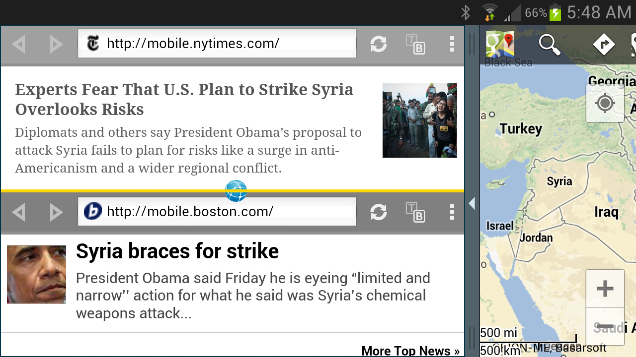 1/14/16 - স্যামসং আপডেট: স্প্লিট ব্রাউজার ট্রায়াল এখন মাল্টি উইন্ডো মোডে নতুন স্যামসং ডিভাইসের মধ্যে কাজ করে.