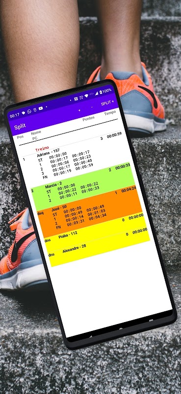 র্যাঙ্ক করা, অযোগ্য, অন-ট্র্যাক এবং এখনও প্রস্থান করা অ্যাথলিটদের রঙে দেখায়।