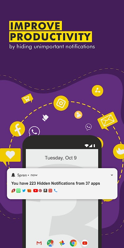 স্প্রেন আপনার অ্যান্ড্রয়েড ডিভাইসের জন্য স্মার্ট নোটিফিকেশন ম্যানেজার, সহকারী, ক্লিনার, ব্লকার is আপনার সুবিধার্থে যাওয়ার জন্য স্প্রেনে বিশ্রামটি লুকানো, নিরাপদে সঞ্চিত এবং সংগঠিত অবস্থায় অবিলম্বে গুরুত্বপূর্ণ বিজ্ঞপ্তিগুলি পান। স্প্রেন আপনাকে আপনার বিজ্ঞপ্তিগুলি ডিক্লুট করার সময় বিভ্রান্তি হ্রাস করে ফোকাসে সহায়তা করে। এত বেশি বিজ্ঞপ্তিগুলির সাথে আর মোকাবিলা করার দরকার নেই যা আপনি কেবল সবকিছু দূরে সাফ করুন !! আপনার তাত্ক্ষণিক মনোযোগের প্রয়োজন নেই এবং আপনি যখন চান তখন পড়তে এবং তার উপর অভিনয় করতে পারেন এমন বিজ্ঞপ্তিগুলি ফিল্টার করতে আর্ট প্রাইভেট অন-ডিভাইস মেশিনের শিক্ষার স্থিতি ব্যবহার করে আমরা বিজ্ঞপ্তিগুলি পরিচালনা করি।