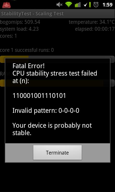 StabilityTest is a CPU, GPU, RAM/memory stress-testing tool for your device, whether stock and unrooted (limited functionality) or rooted and overclocked with SetCPU, SetVsel or similar tools.