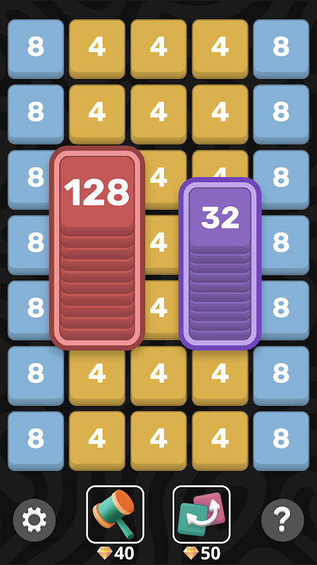 গেমটি সংখ্যাযুক্ত টাইলস দিয়ে ভরা একটি বোর্ড দিয়ে শুরু হয়। আপনার কাজ হল দুটি টাইলকে একই সংখ্যার সাথে একত্রিত করা এবং তাদের স্ট্যাক করার জন্য পরবর্তী উচ্চতর সংখ্যা তৈরি করা।