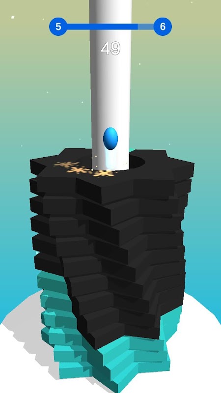 Press and hold on the screen and let the ball go down without touching the obstacles! Hold as long as possible to make combo and break the black blocks. Let the ball fall down from the helix stacks.
