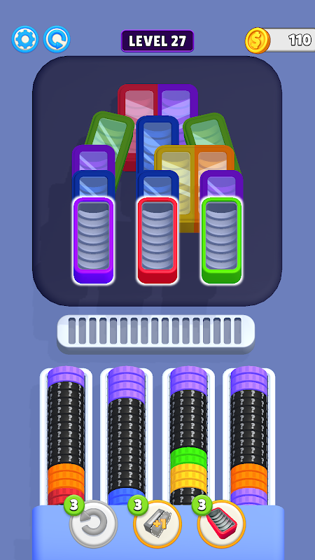 ম্যাচ এবং স্ট্যাক রঙিন কয়েন ধাঁধা খেলা! আপনার মন তীক্ষ্ণ এবং স্তর জয়!