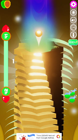 Your ball smashes like a brick through random colorful platforms that block its descent, but if you hit a black one, it's all over and lose coinns ! Your ball shatters to pieces and you have to start your fall all over again.