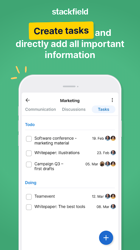 স্ট্যাকফিল্ড একটি সর্বাত্মক প্রকল্প ব্যবস্থাপনা সরঞ্জাম যা কার্য, নথি এবং প্রকল্পগুলিতে সহযোগিতামূলক কাজ সক্ষম করে - প্রয়োজনে এন্ড-টু-এন্ড এনক্রিপশন ব্যবহার করে ডেটা সুরক্ষিত করার বিকল্প সহ।