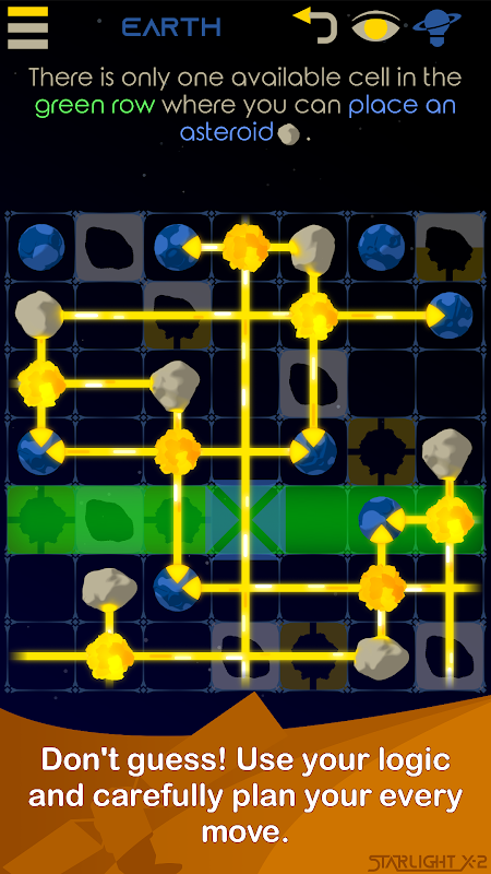 Each প্রতিটি সারি এবং কলামে একটি মাত্র গ্রহাণু থাকতে হবে।