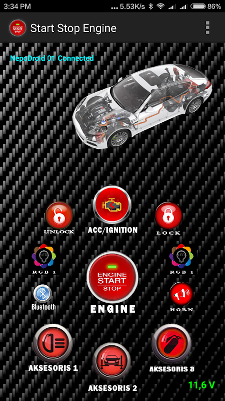 1. (START/STOP engine) Menyalakan Mesin Mobil/motor langsung dari HP android