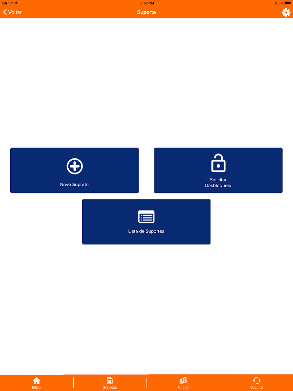 - Opção para acompanhar seus suportes ou iniciar um novo atendimento;