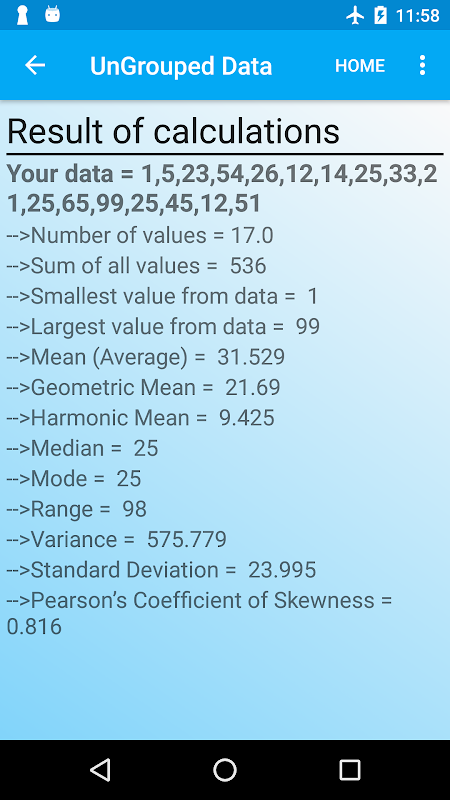 পরিসংখ্যানগত ক্যালকুলেটর: পরিসংখ্যান অ্যাপ হল একটি গণিত অ্যাপ যা একক স্পর্শে বিভিন্ন পরিসংখ্যানগত গণনা করে।