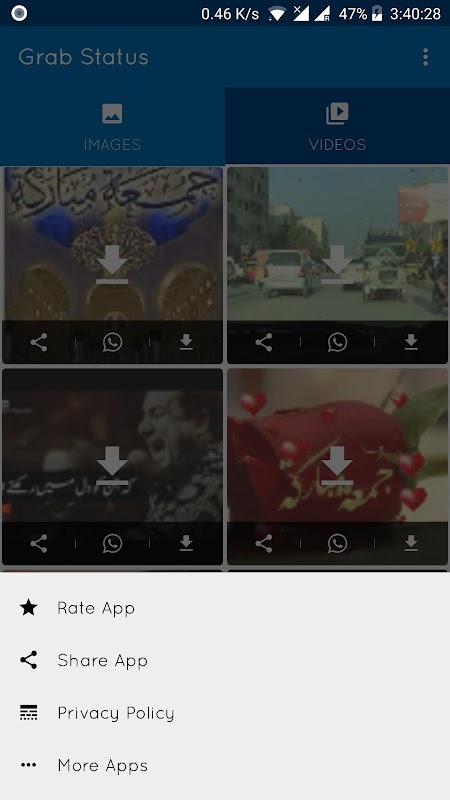 আপনি স্ট্যাটাস ইমেজগুলি এবং ভিডিওগুলি ডাউনলোড বা দেখতে পারেন সহজেই ডিভাইসে ডাউনলোড বা সংরক্ষণ করতে বা স্থিতি স্থিরভাবে পোস্ট করতে পারেন।