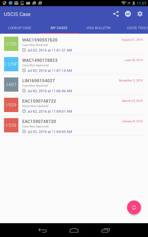 3. সব ক্ষেত্রেই অবস্থা অটো রিফ্রেশ মামলার অবস্থা রিফ্রেশ 4 বার একটি দিন. এছাড়াও আপনি আপনার ক্ষেত্রে তালিকা নিজে রিফ্রেশ করতে পারেন.