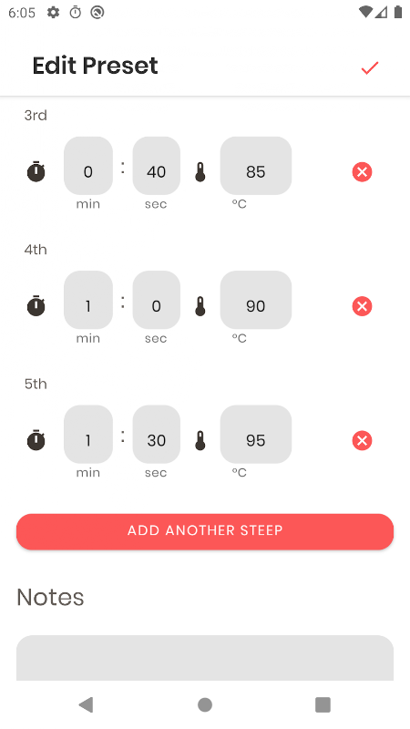 প্রতিটি টাইমারের নাম, খাড়া সময়, চায়ের ধরন, জলের পরিমাণ, চায়ের পরিমাণ কাস্টমাইজ করুন এবং নিখুঁত কাপ চা তৈরির জন্য আপনার নিজস্ব নোট যোগ করুন।