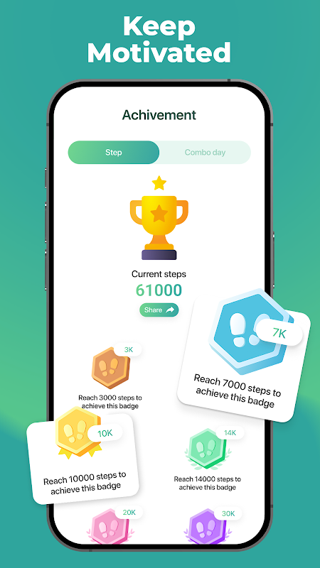 সঠিক পদক্ষেপ ট্র্যাকিং: আপনার ফোন আপনার পকেটে বা ব্যাগে থাকলেও রিয়েল-টাইমে আপনার পদক্ষেপগুলি স্বয়ংক্রিয়ভাবে গণনা করে।