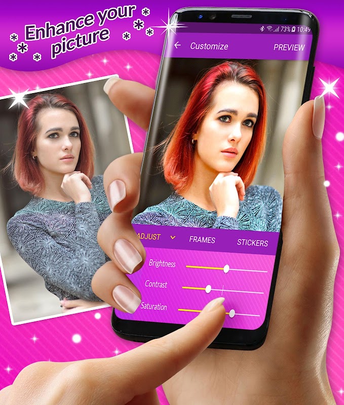 Enhance your photos with stickers and frames - the new 2018 free editor app featuring a live wallpaper option! Features hearts, butterflies, stars, emoji, glasses, wigs, your name, clocks, magic touch and many other options!