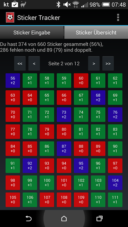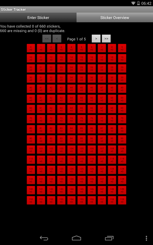 স্টিকার ট্র্যাকার আপনাকে আপনার স্টিকার সংগ্রহ ট্র্যাক করতে সাহায্য করে এবং আপনাকে সংগ্রহ করা এবং অনুপস্থিত স্টিকারগুলির একটি ওভারভিউ রাখতে দেয়। স্টিকারগুলি স্টিকার নম্বরের মাধ্যমে বা ওভারভিউ পৃষ্ঠা ব্যবহার করে স্টিকার যোগ করার জন্য প্রবেশ করা যেতে পারে।
