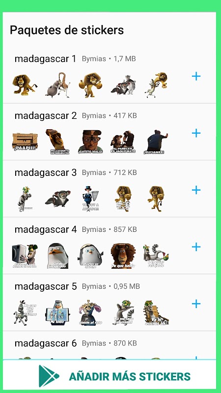 La aplicación Stickers de Madagascar para WhatsApp WAStickerApp te permite agregar más de 300 stickers de la serie Madagascar.