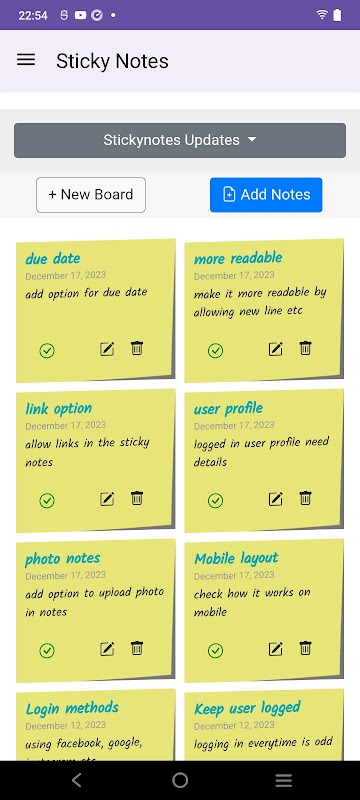 স্টিকি নোট একটি বিনামূল্যের অ্যাপ যেখানে আপনি আপনার দৈনিক নোট যোগ করতে পারেন। আপনি একাধিক বোর্ড তৈরি করতে পারেন এবং বোর্ডগুলিতে বিভিন্ন নোট যোগ করতে পারেন। আপনি স্থায়ীভাবে আপনার নোট সংরক্ষণ করতে সাইন আপ করতে পারেন, বা অতিথি হিসাবে অ্যাপটি ব্যবহার করতে পারেন৷