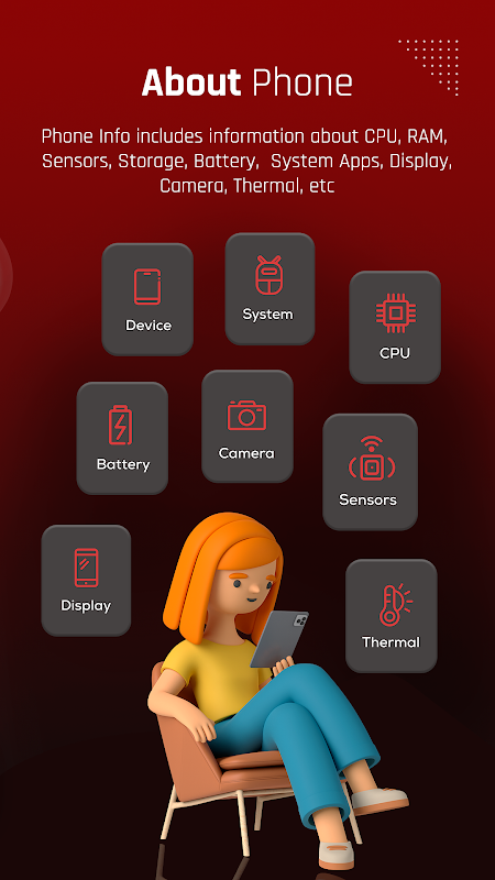 ফোন সম্পর্কে একটি সহজ এবং শক্তিশালী বৈশিষ্ট্য যা আপনাকে একটি উন্নত ব্যবহারকারী ইন্টারফেস এবং উইজেট সহ আপনার মোবাইল ডিভাইস সম্পর্কে সম্পূর্ণ তথ্য দেয়।