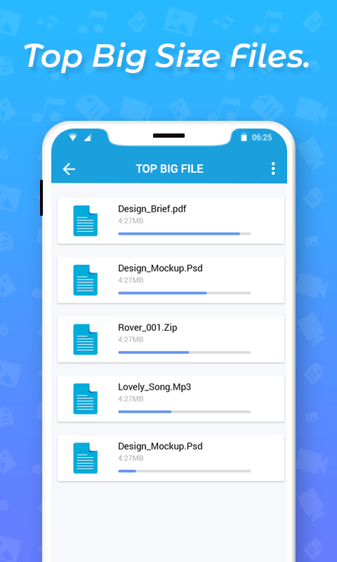* Analyze all types of files including Image Files, Video Files, Music File, Apps & APKs.