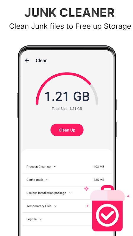 অ্যাপ্লিকেশনটি একটি মোবাইল স্টোরেজ ক্লিনার এবং পারফরম্যান্স মনিটর যা ব্যবহারকারীদের তাদের ডিভাইসের স্টোরেজ পরিষ্কার করতে সহায়তা করে। অ্যাপটি জাঙ্ক এবং অবাঞ্ছিত ফাইল যেমন অবশিষ্ট ফাইল, ক্যাশে ফাইল এবং অস্থায়ী ফাইলগুলির জন্য ডিভাইসটিকে স্ক্যান করে এবং ব্যবহারকারীকে কয়েকটি ক্লিকে সেগুলি মুছে ফেলার অনুমতি দেয়। এটি ডিভাইসে স্থান খালি করে এবং অন্যান্য অ্যাপ্লিকেশনের জন্য স্থান বাঁচাতে সাহায্য করে।