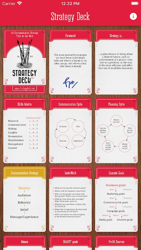 Strategy Deck — all communication strategy tools in one deck of tip cards in one application.