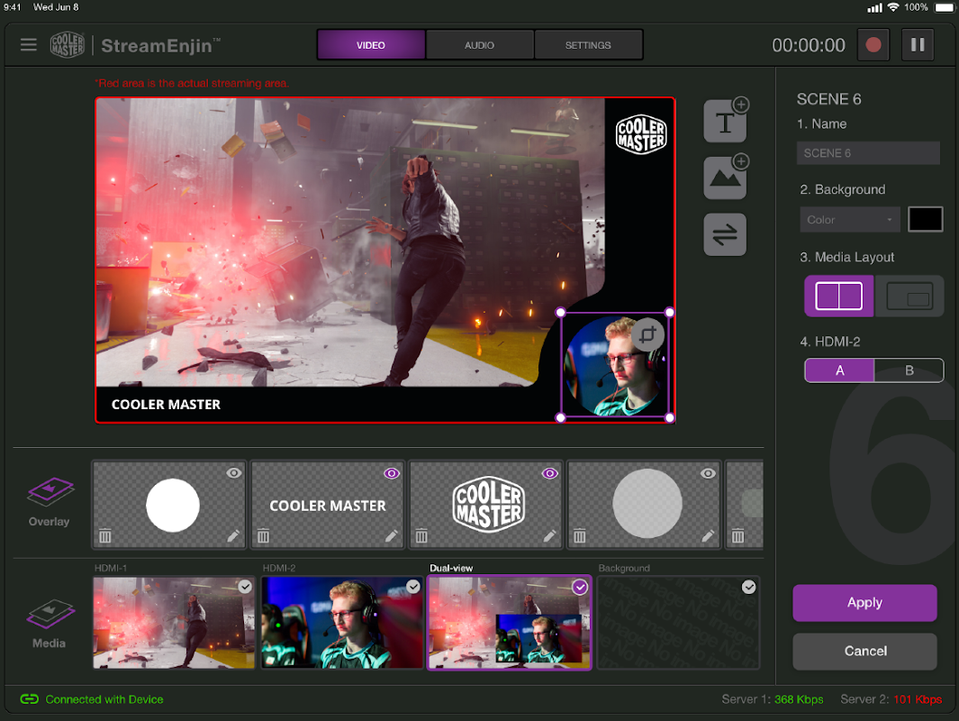কুলার মাস্টারের স্ট্রেইমজিন অ্যাপ এবং কুলার মাস্টারের স্ট্রিম এঞ্জিন দিয়ে আপনার লাইভ ভিডিও এবং ভিডিও সামগ্রীর তৈরিগুলি স্ট্রিম করুন।