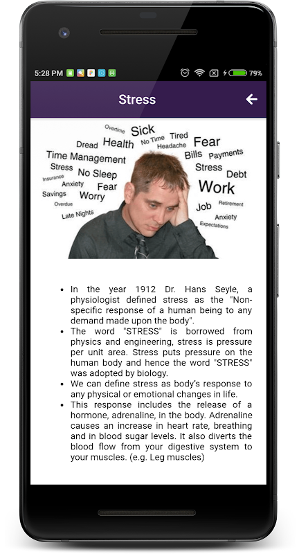 Resolves stress related problems of individuals based on practical solutions