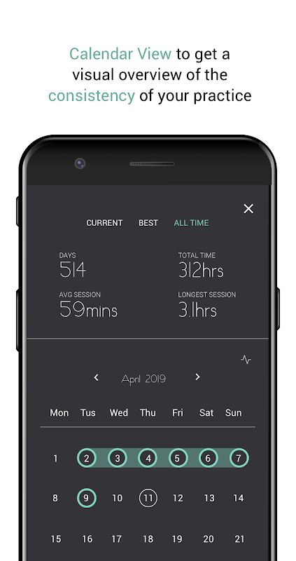 মিনিটস অ্যাপটি আপনাকে তা দিয়ে আপনার ধ্যানের অভ্যাসটি ট্র্যাক এবং কাজ করার সুবিধা দেয়: